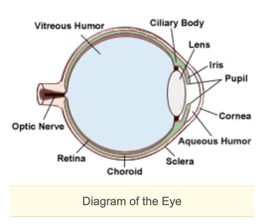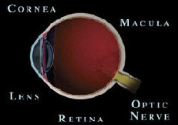 All components of the eye are designed to support and focus light on the retina with its millions of photoreceptors and nerve fibers lining the back wall of the eye.